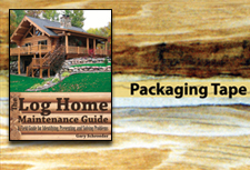 Depending on the condition of the caulk or chinking, the material could be completely torn out, a backer rod installed, and then caulk or chinking reapplied. An alternative to removing all of the caulk/chinking material is to run a length of packaging tape down the middle of the joint, over the chinking material as shown on the right (the tape will act as a bond breaker). Then cover the old caulking and packaging tape with a new layer of caulk or chinking as shown.